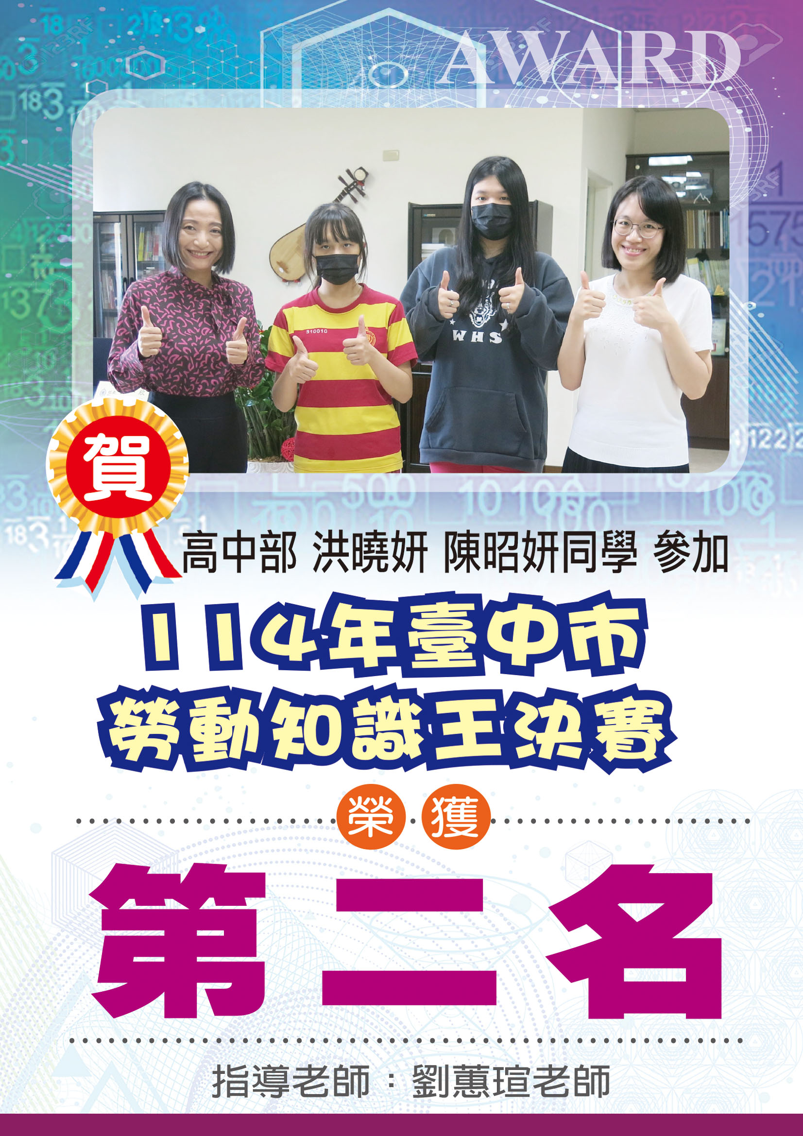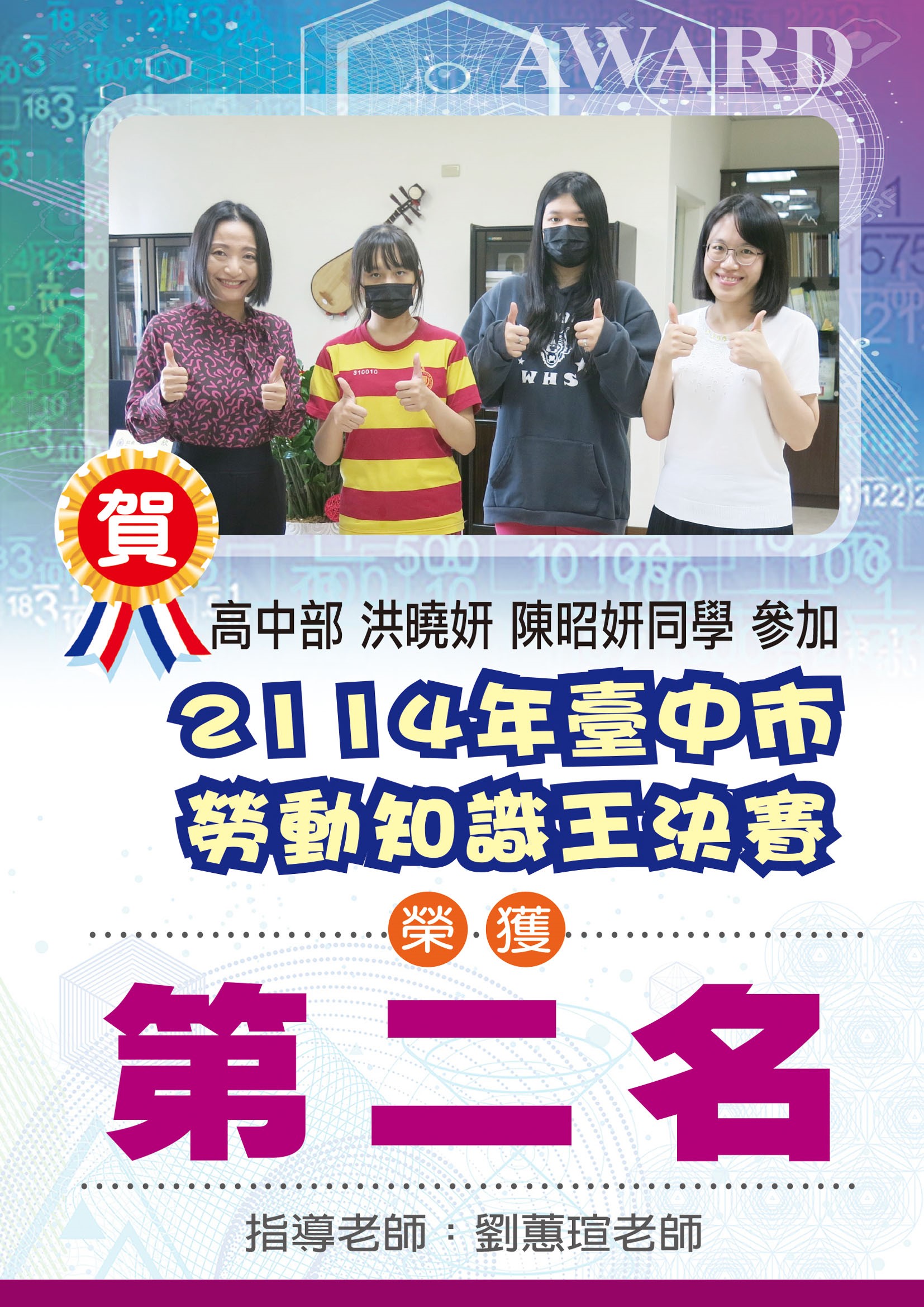 高中部 洪曉妍 陳昭妍 同學 榮獲 第2名