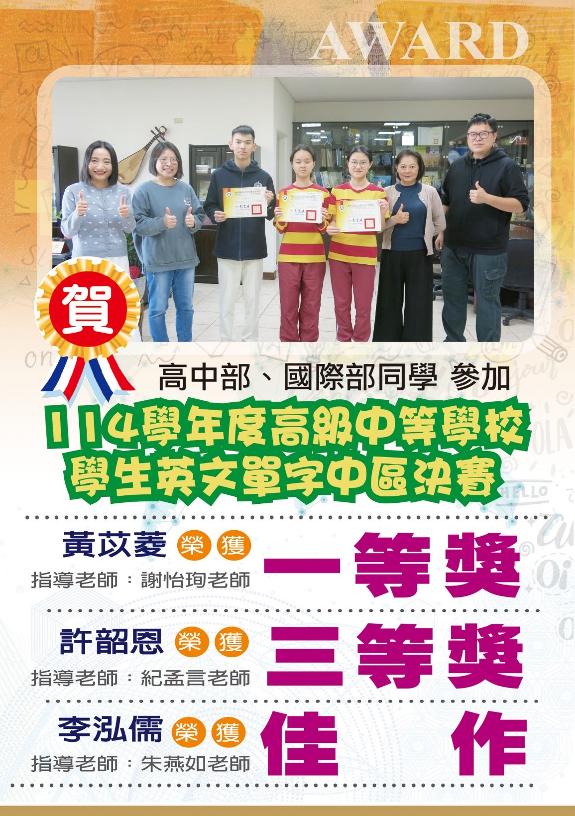 114學年度高級中等學校學生英文單字中區決賽