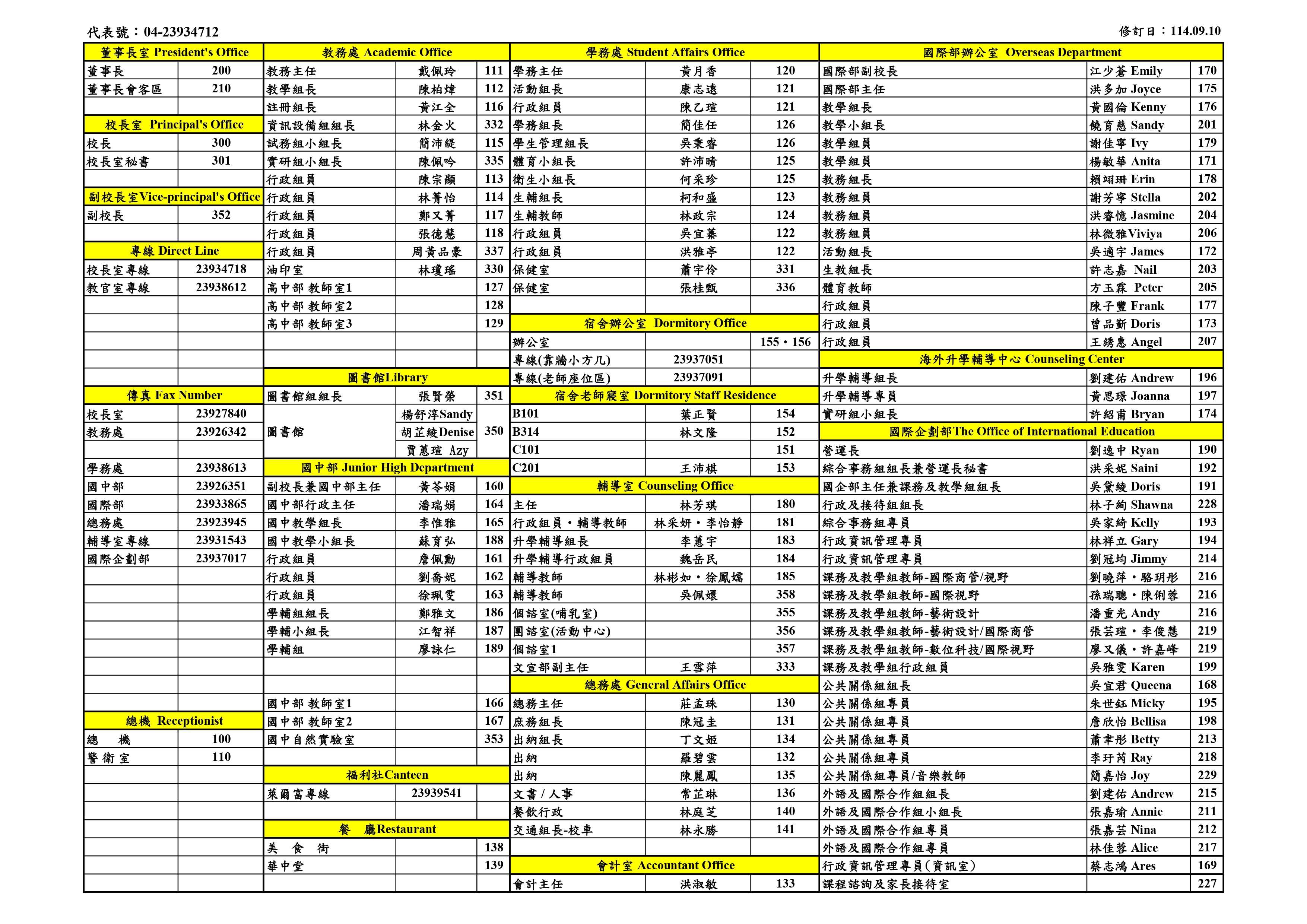 各處室分機