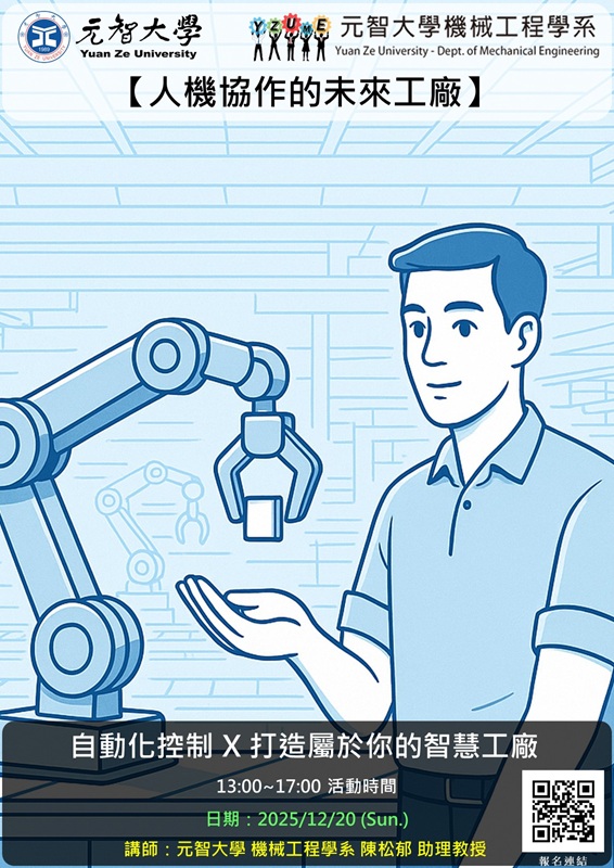 元智大學機械工程學系辦理「自動化控制 X 打造屬於你的智慧工廠」活動相關資訊