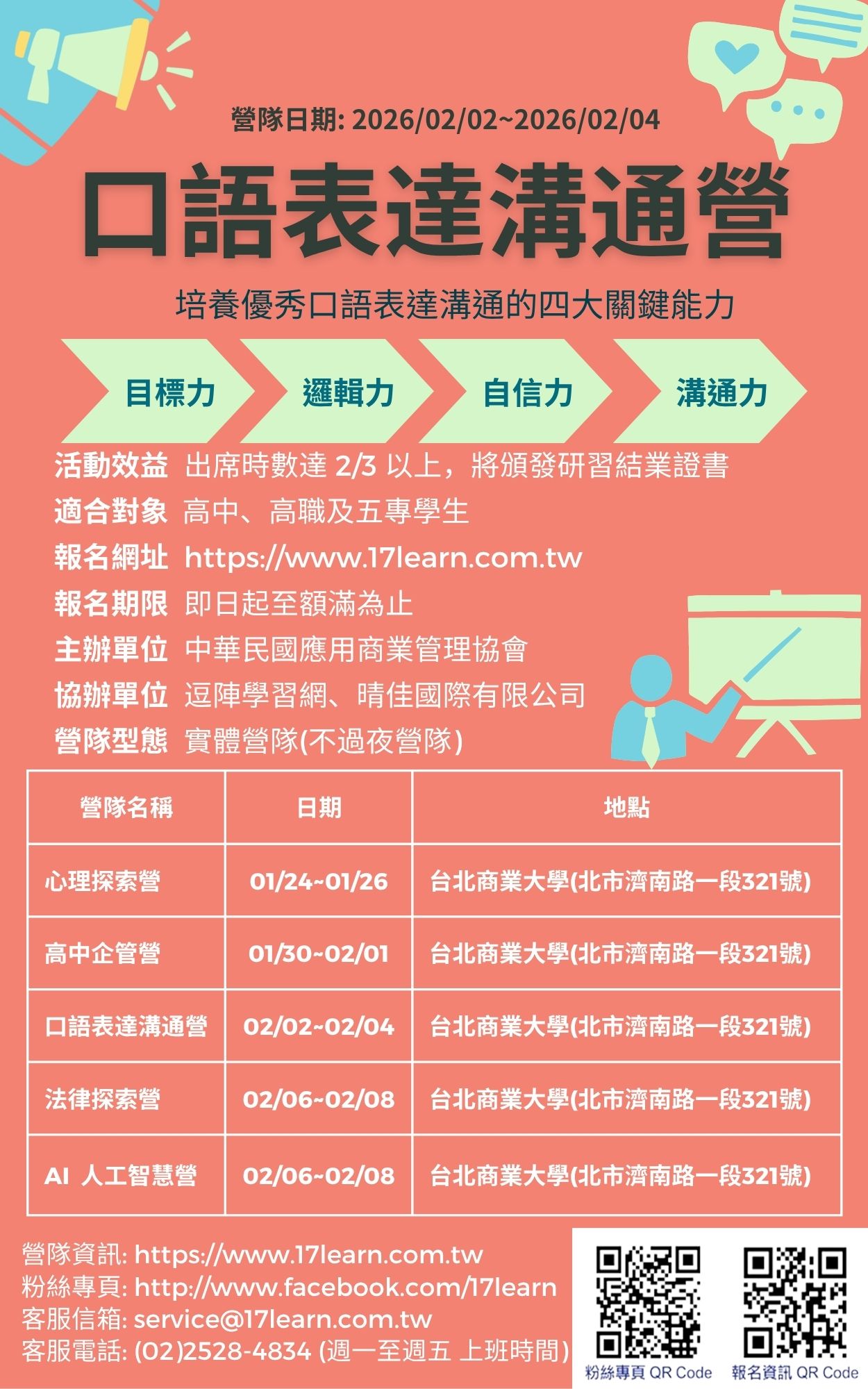 社團法人中華民國應用商業管理協會辦理「口語表達溝通營」活動相關資訊