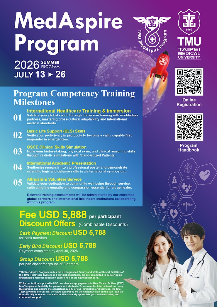 臺北醫學大學為期14天之沉浸式醫學教育體礆課程,相關資訊如說明,歡迎同學報名參加。