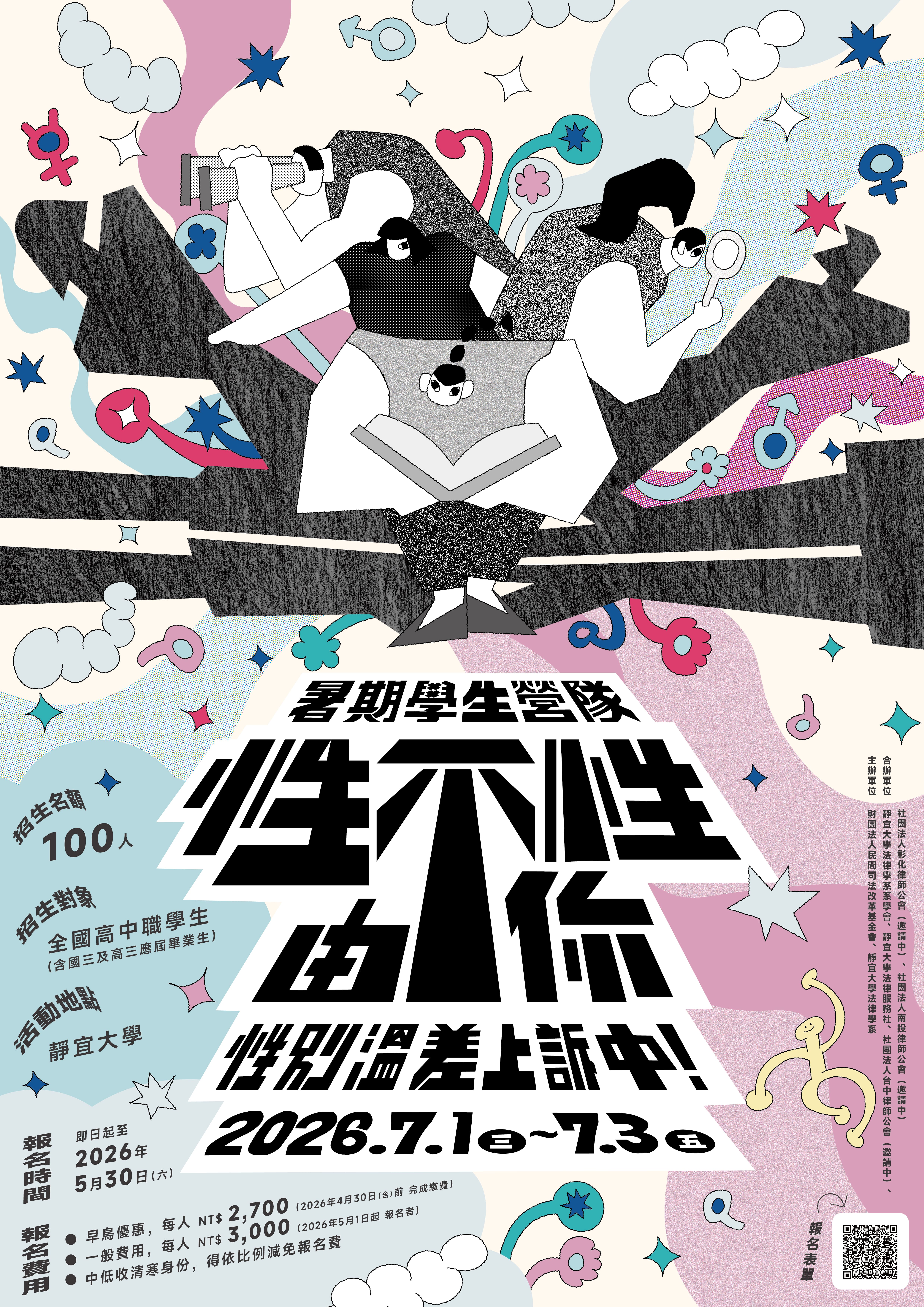 靜宜大學法律學系與財團法人民間司法改革基金會共同辦理暑期學生營隊【性不性由你—性別溫差上訴中!】活動,相關資訊如說明,歡迎同學報名參加。