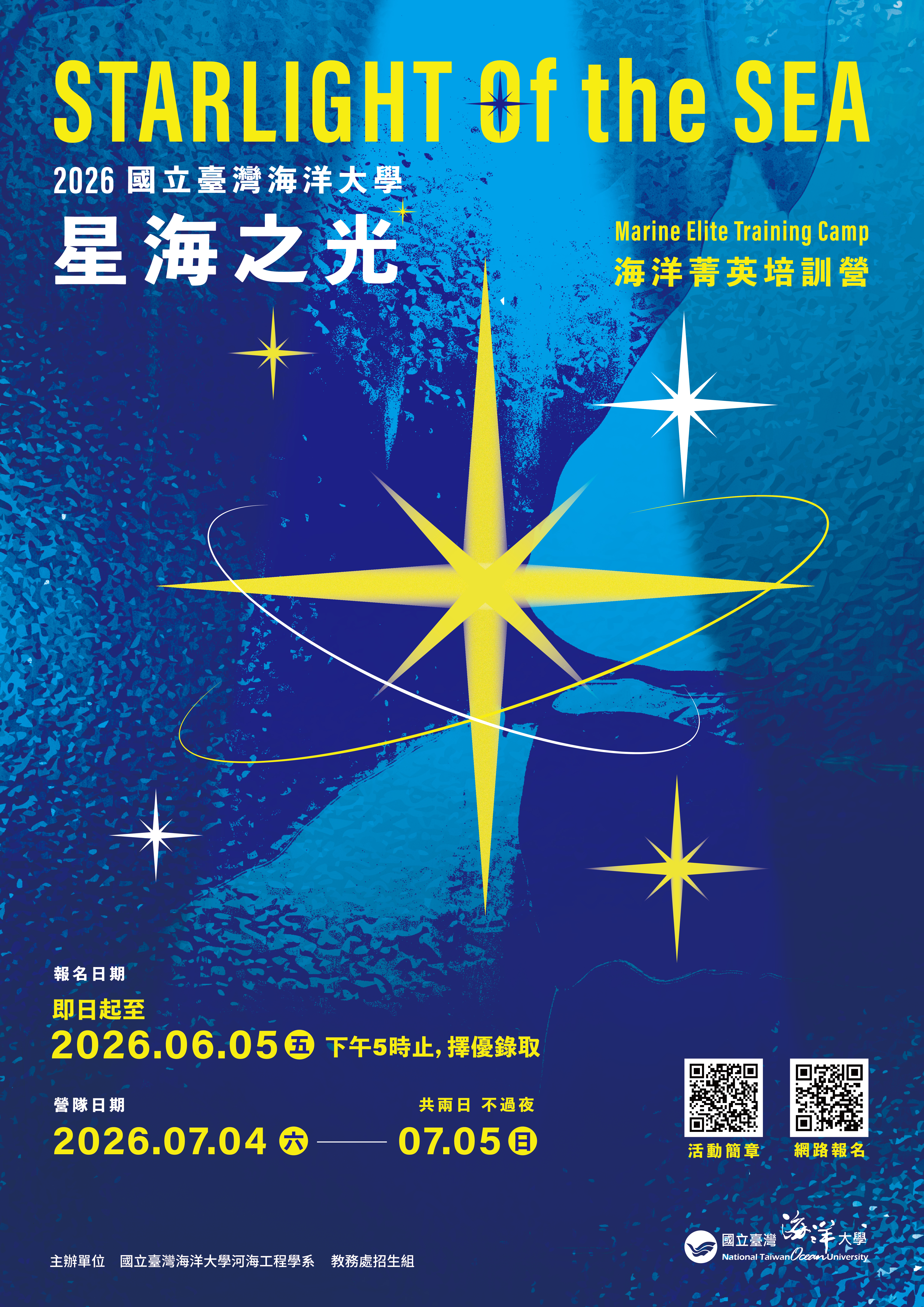 國立臺灣海洋大學辦理2026年「星海之光」 海洋菁英培訓營活動,相關資訊如說明,歡迎同學報名參加。