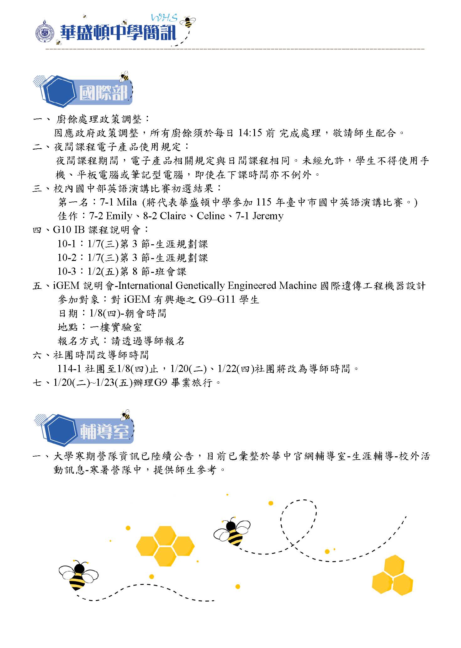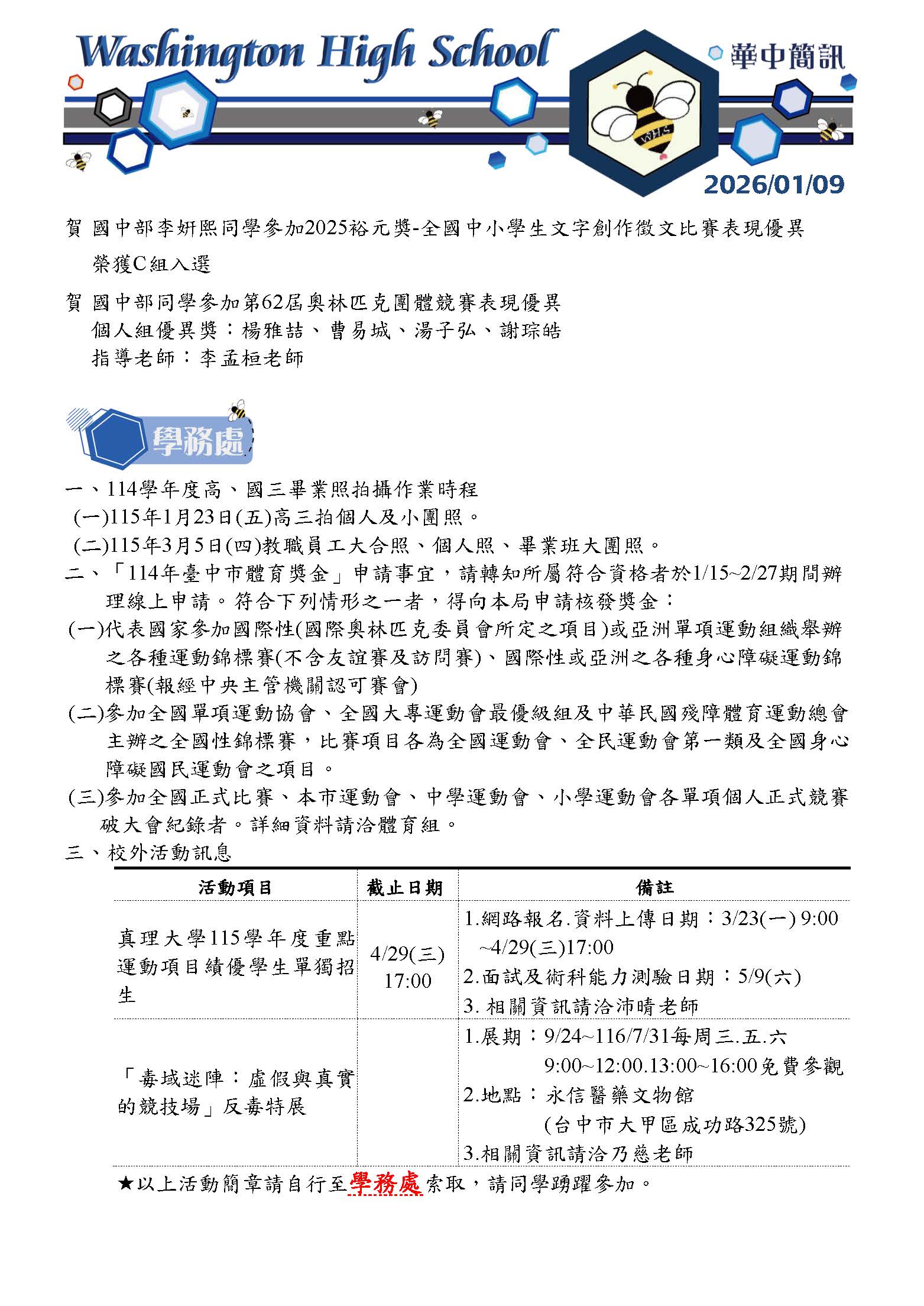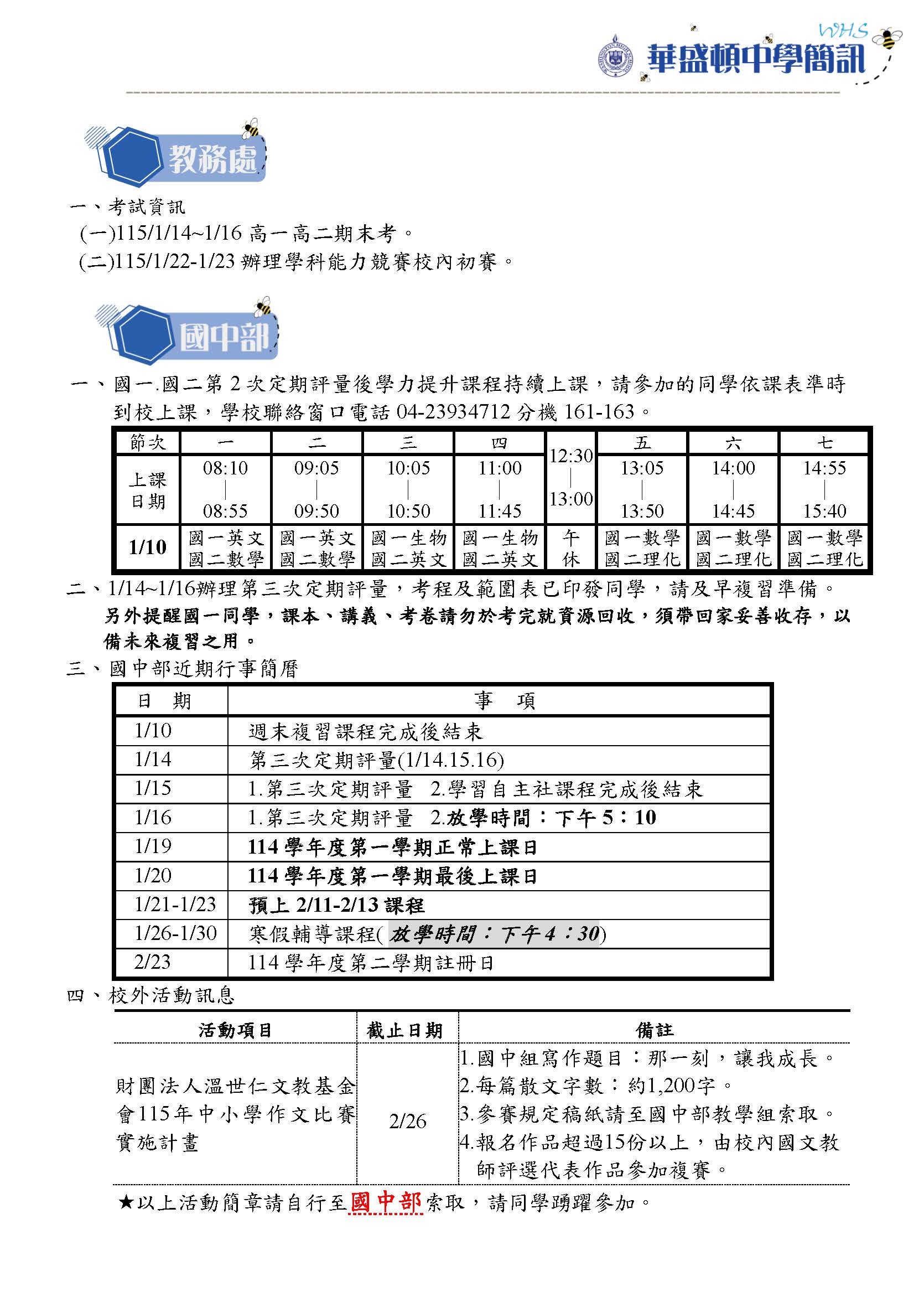 華中簡訊115/01/09