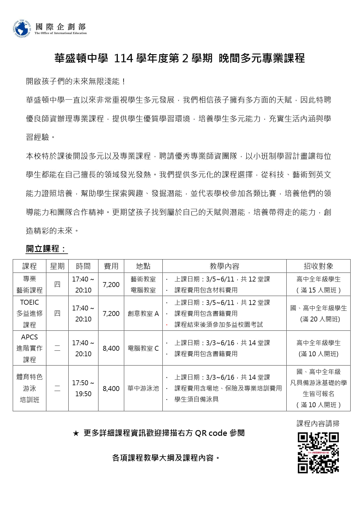 114-2 晚間專業多元課程資訊