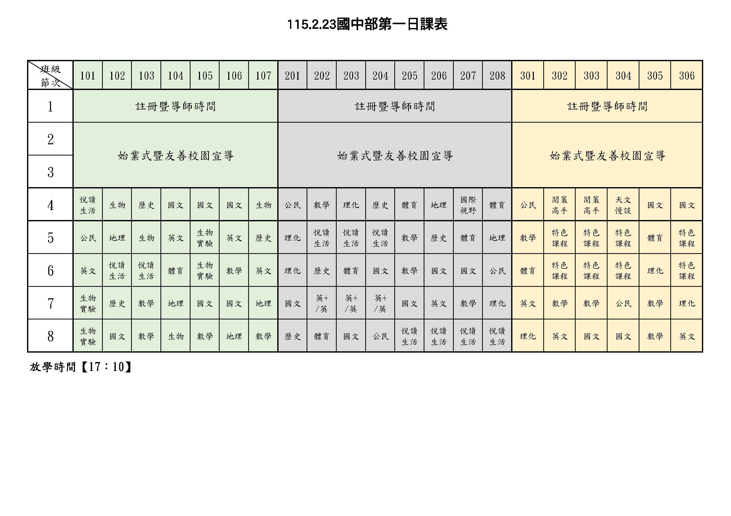 114-2國中部開學日課表