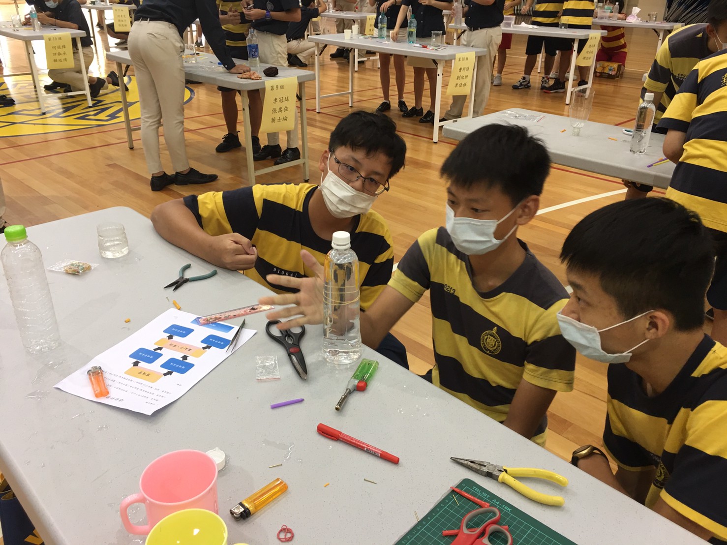 擔任此次評審的物理科教師侯嘉倫指出,今年學生製作水準相較往年高,華中學子的自然科學探究與實作能力讓人驚豔,一場科學趣味競賽,讓老師與學生都燃起熊熊烈焰的科學魂!學生必須在短短三十分鐘內絞盡腦汁,藉由各種嘗試將不同數量的銅釘與水置於吸管內,再用火烤使吸管融化並封住,製作成浮沉子。接著將特製浮沉子編號並放入寶特瓶中等待評分,參賽者們緊張萬分。