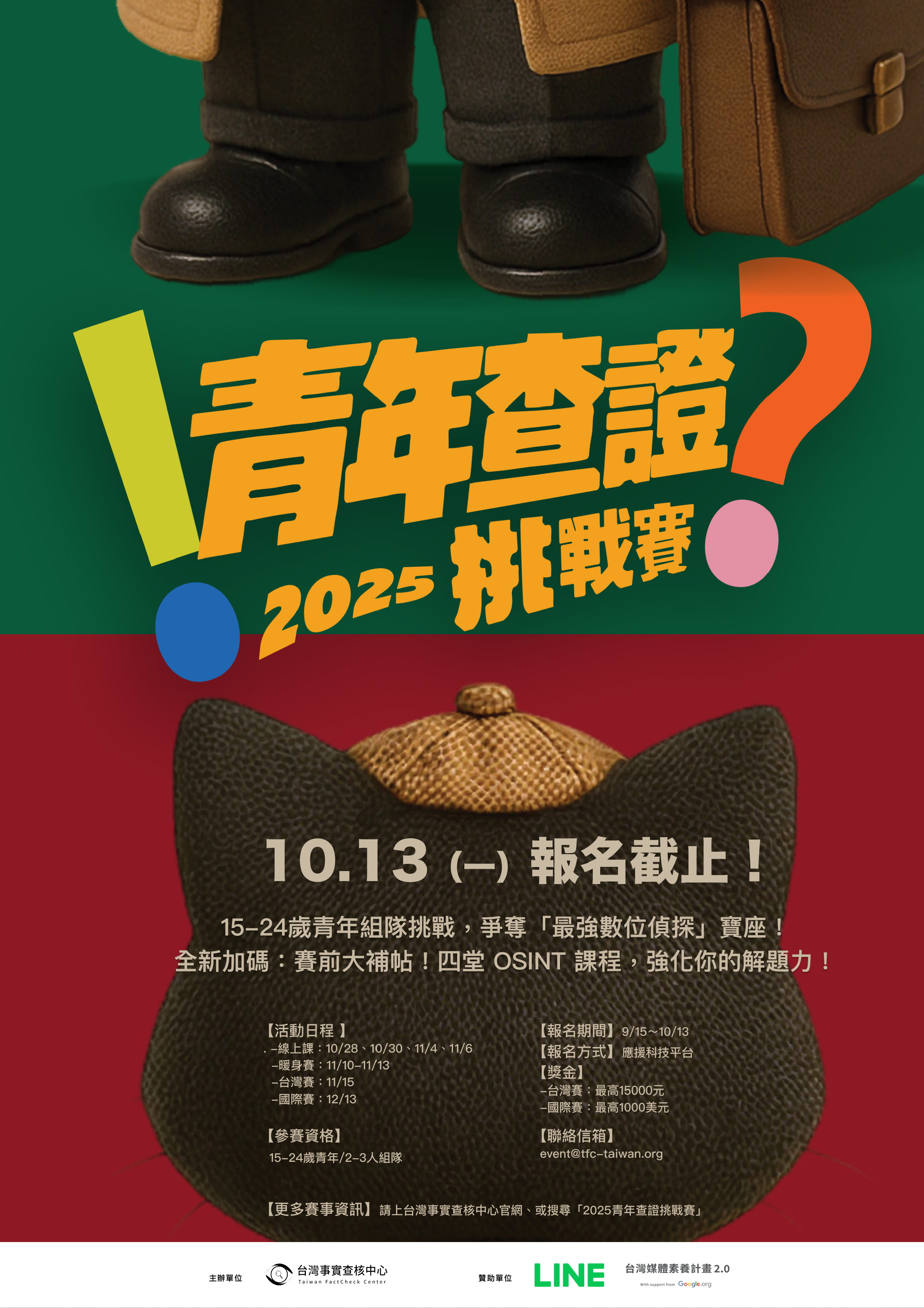 三、報名資格:15-24 歲青年,2-3 人組隊(生日區間:2001年~2010年)