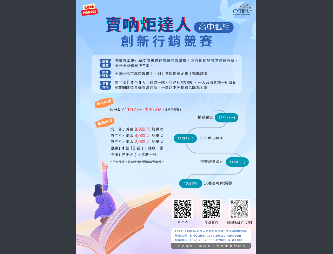 【轉知】朝陽科技大學校企業管理系主辦之「2025全國賣吶炬達人創新行 銷競賽-高中職組」比賽辦法