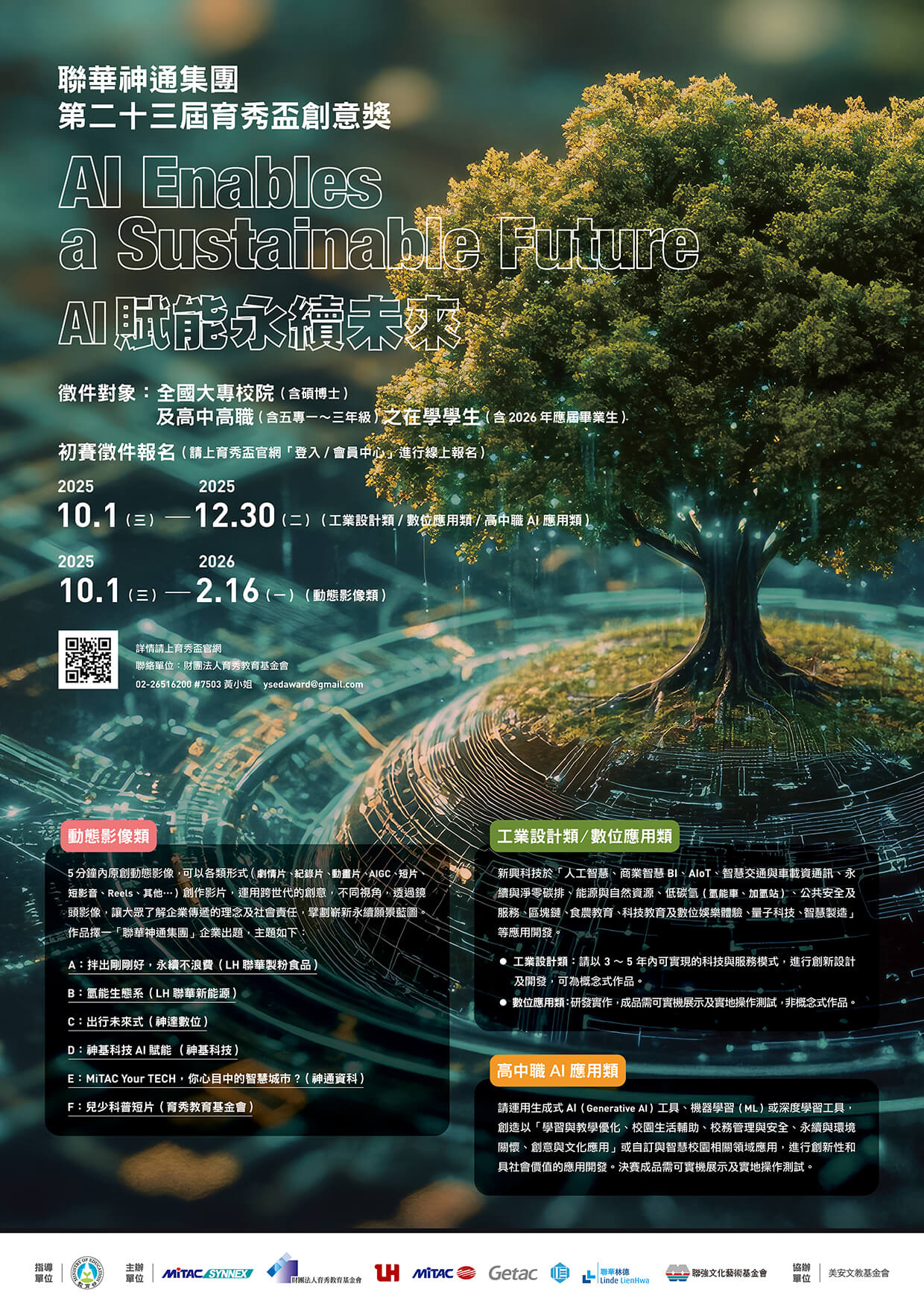 (一)初賽結果公告:數位應用類、工業設計類、高中職AI應用類2026年1月19日(一)公告入圍結果。