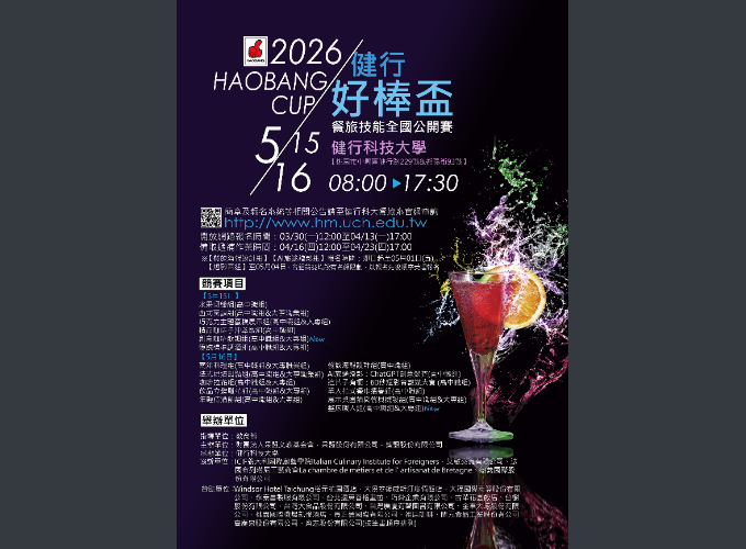 三、竸賽日期:2026年5月15日、5月16日(星期五、星期六)08:00-17:30(各組競賽均設有名額限制,以報名先後順序受理報名)。