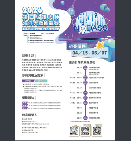 一、本競賽應用NODASS平台海洋數據,鼓勵並培養高中及大專學生與師培生運用科學知識解決問題的能力,同時促進團隊合作共同解決海洋議題,培育未來海洋人才。