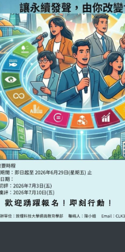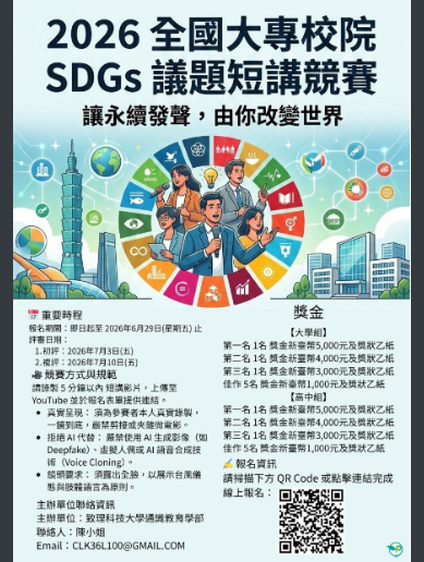 一、為提升學生口說敘事、詮釋表達及議題關懷之能力,特舉辦SDGs議題短講競賽,鼓勵學生發揮公民實踐的素養,主動闡述社會議題及現象,並進而提出看法或解決方案,以響應國際永續議題,善盡大學社會責任。
